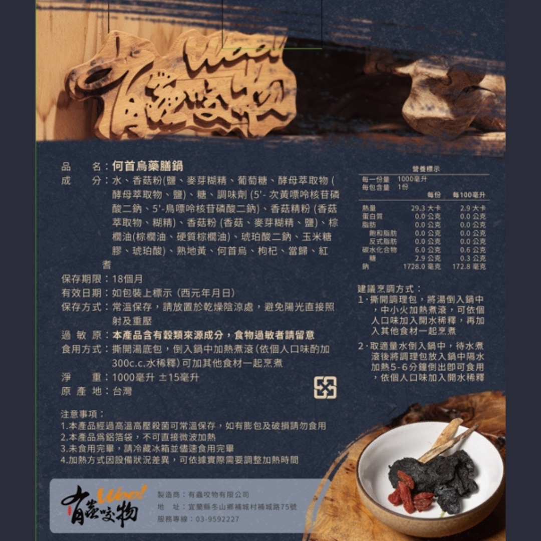【食在美好】有蟲咬物 餐廳火鍋湯底系列1000ml 何首烏藥膳鍋