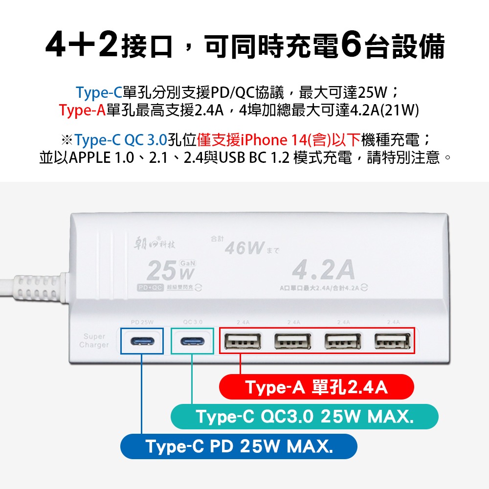 單孔最大輸出為2.4A,可同時為6個裝置充電