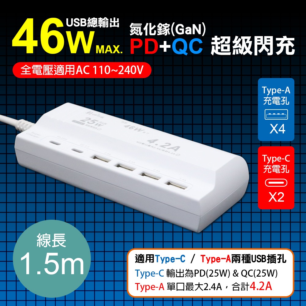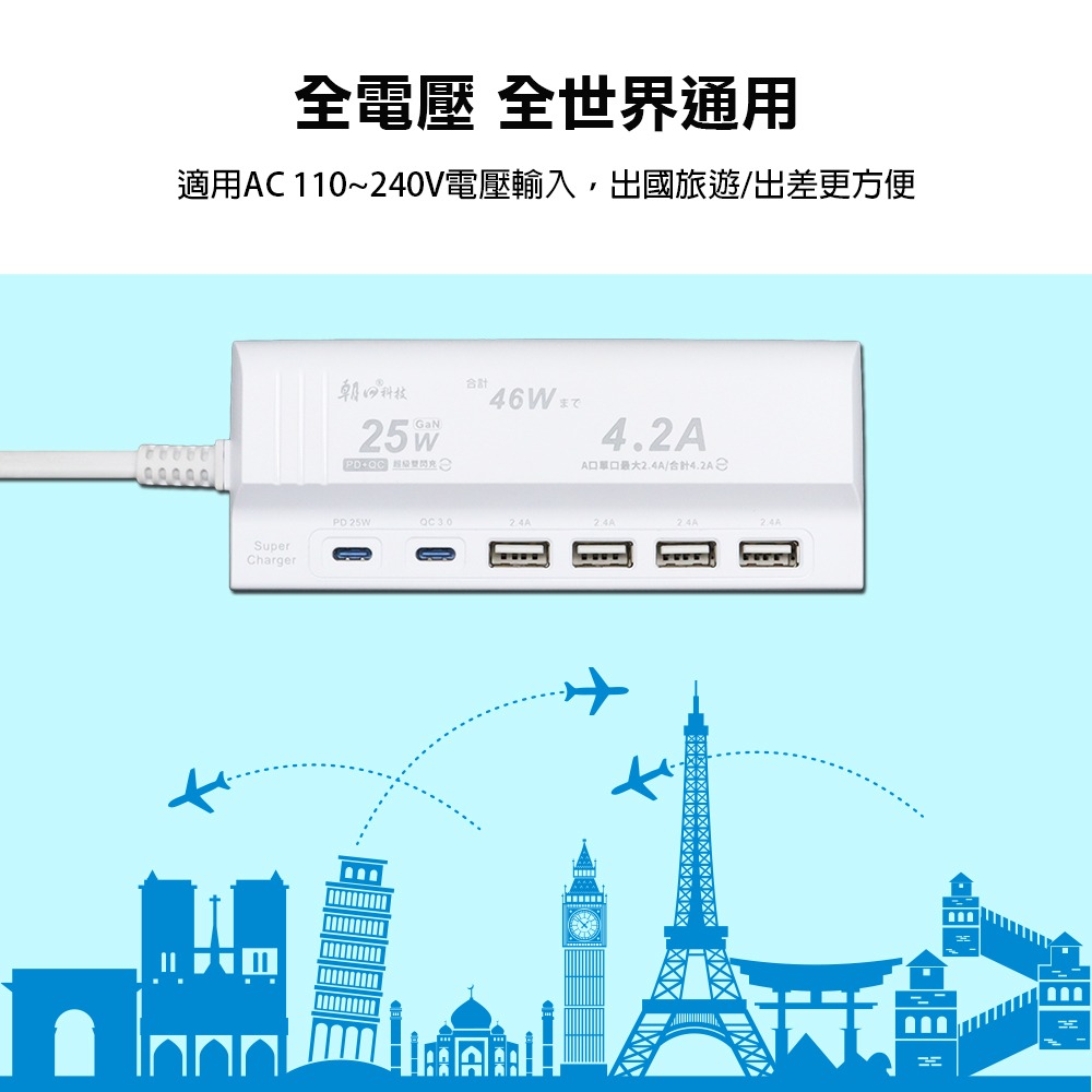 朝日科技 USB智慧型充電器 4.2A 充電延長線 1.5米 USB-06PD