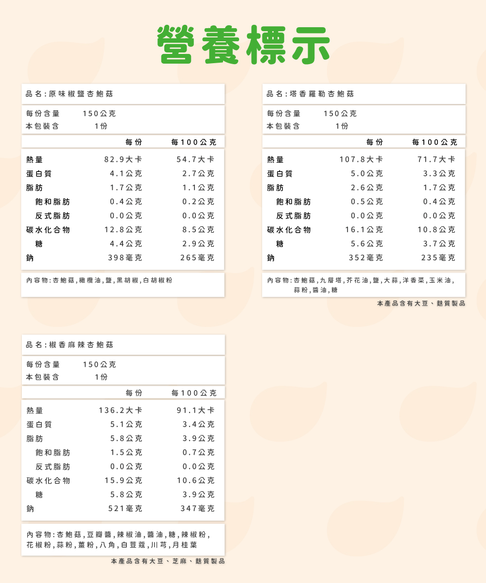 📢【杰森食代】全品項商品,單筆消費滿$1299享免運費📢【杰森食代─享受簡單美味 感受幸福滋味】 採用低溫烹調方式所製作而成的舒肥杏鮑菇,多汁厚實且彈牙的口感使它被稱作「素食界的牛排」,杏鮑菇的低脂肪、低熱量、高蛋白質和高纖維的特性,更讓杏鮑菇成為健人的飲食好夥伴,採用低溫烹調方式,是愛吃也懂吃的你不能錯過的最佳選擇。📢 產品:舒肥杏鮑菇150g/包📢【源頭管理,食材把關】杰森食代擁有ISO22000暨HACCP食安系統認證選用ISO22000認證專業養殖場的A級杏鮑菇系統化生產、無塵室加工、精緻化栽培、頂級品質!從源頭把關,安全送到您的餐盤上。📢什麼是舒肥(Sous vide) ?舒肥法是一種通過低溫度長時間加熱的烹飪方法,目的是要帶出原料(尤其是肉類)的最佳效果,透過將空氣抽掉的方式避免食材因氧化而破壞品質,藉由對時間和溫度的精準控制,能讓食材均勻受熱,並保留住最多的養分、水分與自然風味,創造一份份幸福美味。