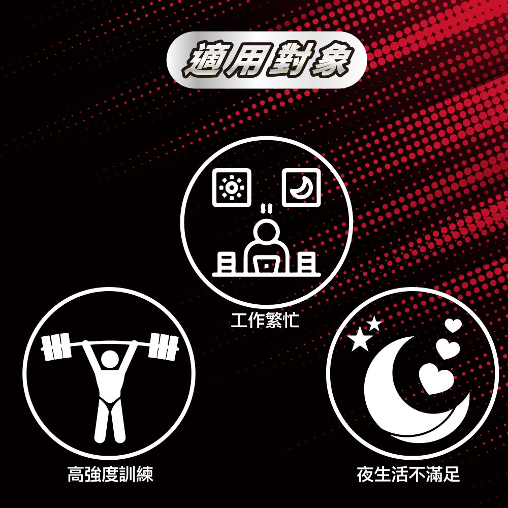 .釋放原初瑪力,能量鋅突破.激活續航能量,體力表現更充實.爆發戰力,精氣旺盛.BCAA 人體無法合成之必需胺基酸.專利紅黑馬卡x法國專利酵母鋅增強戰力Power Up!.L-精胺酸必要營養幫助生成一氧化氮