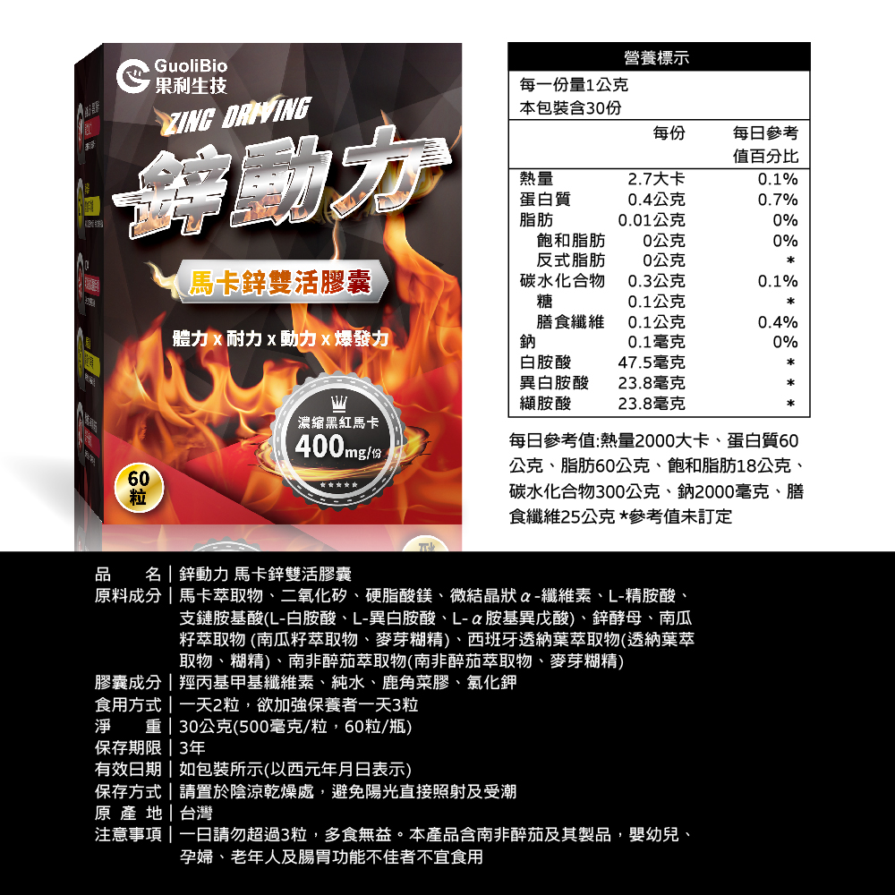 【果利生技】鋅動力 瑪卡鋅雙活膠囊 (60顆/盒)(效期:2028//17)