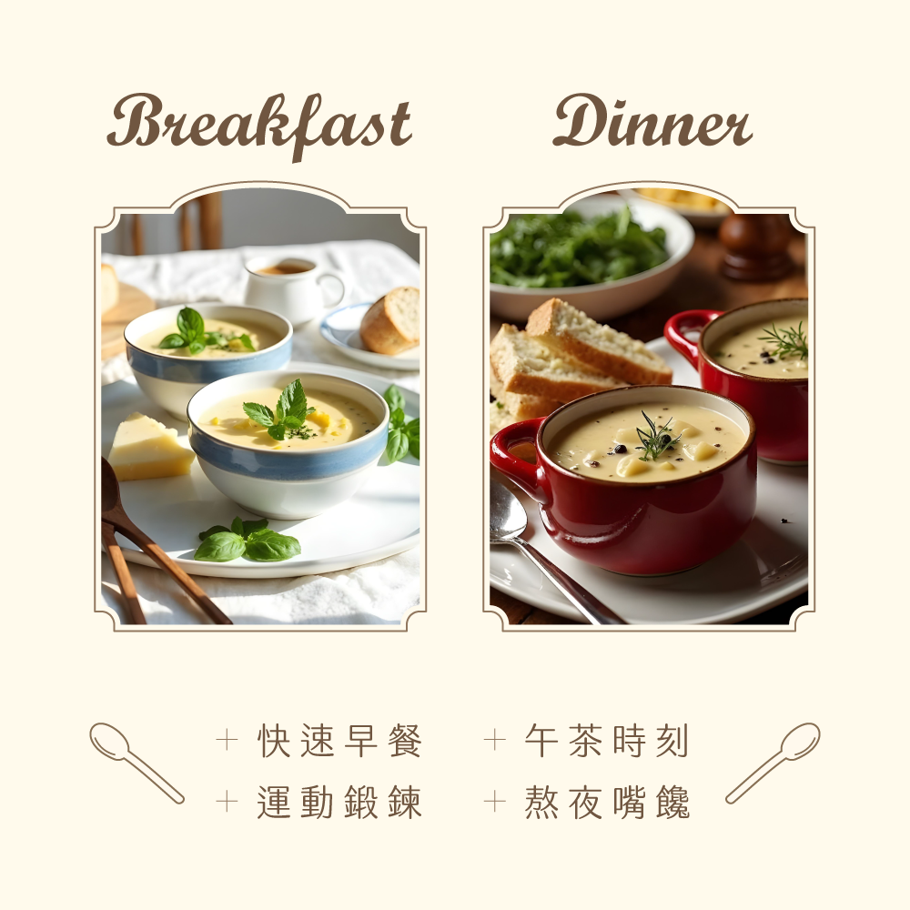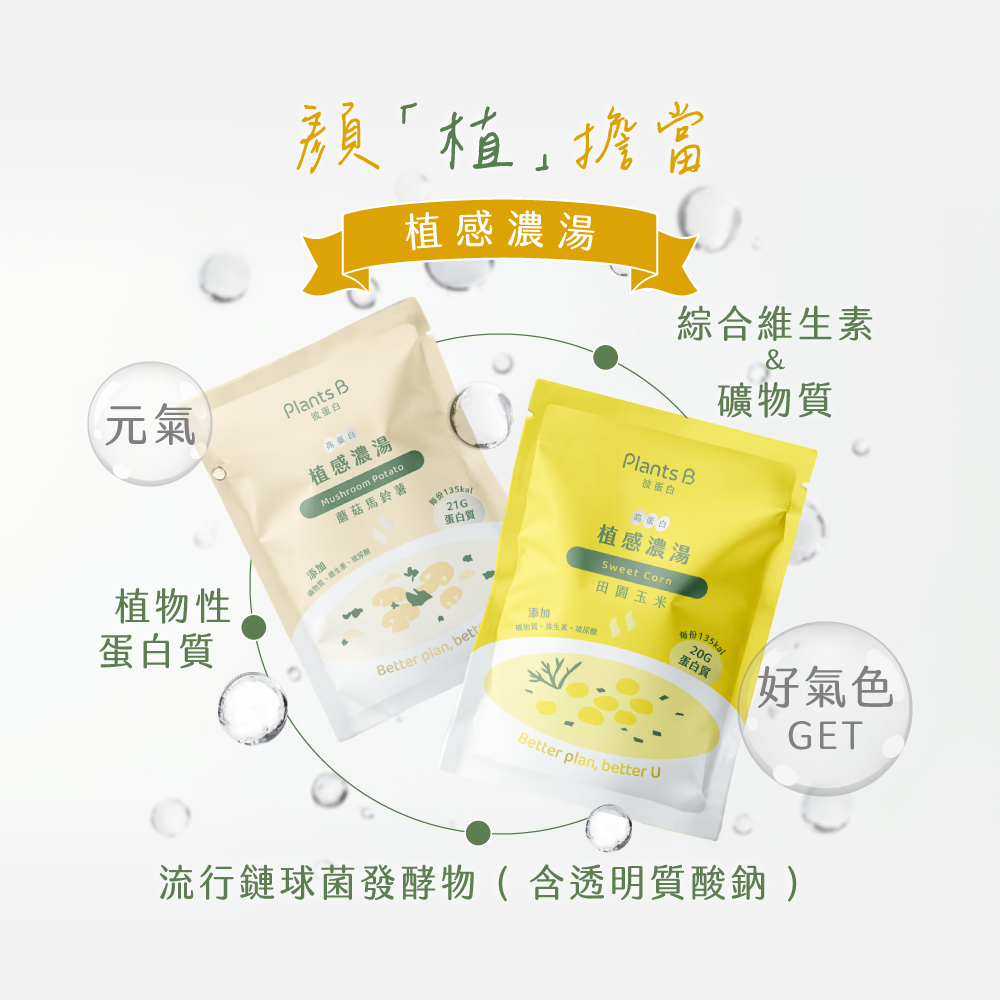 本公司只提供電子發票 下單請在備註提供電子郵件 *濃郁滿足,蘑菇馬鈴薯口味【內容量】:每包 35 克 每包含20g蛋白質,為美力而生的高蛋白濃湯● 使用 4 種植物蛋白:大豆蛋白、米蛋白、葵花籽蛋白、豌豆蛋白,提供多種植物營養● 每份含有 20g 蛋白質,提供日常所需● 熱量每包約 135 大卡,當做點心飽足感剛剛好● 綜合維生素、礦物質添加● 添加流行鏈球菌發酵物(含透明質酸鈉)● 70 度 C 熱水即沖即飲,不怕高溫破壞營養素,稍加攪拌,溫暖美味隨時開動!