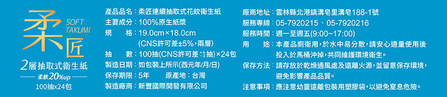 ◎品牌:柔匠 ◎規格: 100PC抽 x 24 x 1Bag袋