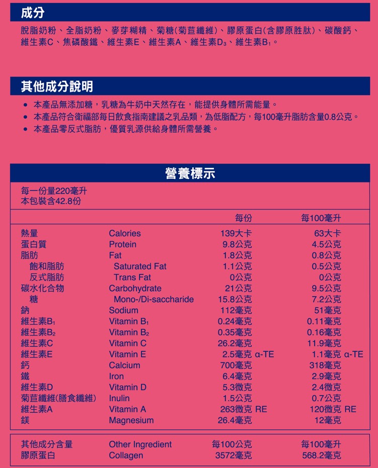 桂格高鐵高鈣奶粉膠原蛋白配方
