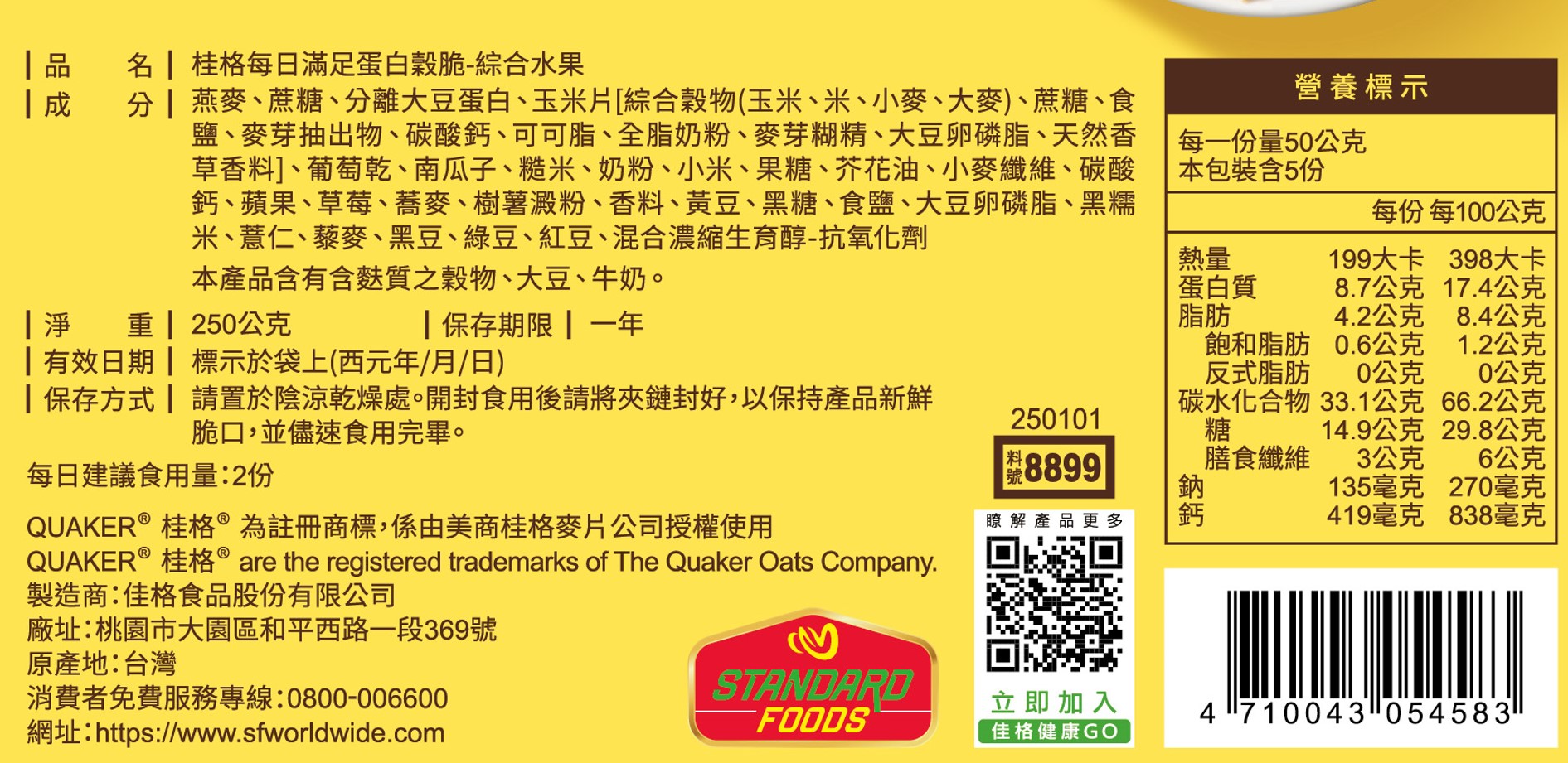 桂格每日滿足蛋白穀脆-綜合水果250g