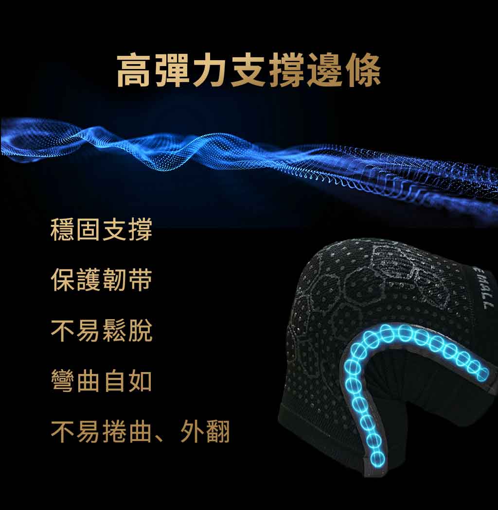 【商品特色】◉量子石墨烯黑科技遠紅外線能量傳遞,幫助提升膝蓋跟腿部肌肉的耐力與靈活度◉988顆太極能量鍺石+40個太極能量鍺蜂巢幫助提高振動頻率◉不鏽鋼彈力邊條支撐並保護韌帶,並可隨雙腿動作彎曲、活動自如◉萊卡面料完整包覆、不易鬆脫滑動◉親膚竹炭紗透氣排汗舒適,不易產生異味◉彈力纖維耐用且不易變形,適用不同體型◉Protimo專利碘紗幫助減少細菌滋生的發生率【商品規格】◉顏色:黑◉材質:聚酯纖維85% (內含墨烯、能量鍺、竹炭紗)、彈性纖維15%◉尺寸:FREE SIZE (適用膝圍 26 - 46 cm)◉保存期限:10年◉產地:台灣【洗滌方式】◉適宜手洗,請使用中性洗劑,避免溫水洗滌、浸泡◉勿使用漂白水、柔軟精清洗,其成分會破壞抗菌纖維◉置於陰涼通風處晾乾,避免太陽曝曬◉切勿烘乾或吹風機熱吹乾、熨燙及乾洗【溫馨提醒】◉兩側用來保護韌帶用的不鏽鋼彈力邊條為金屬,請避免穿著護膝過機場安檢,也請不要讓7歲以下的孩童單獨使用。◉七天鑑賞期為猶豫期非試用期,商品須在完整、未使用,並且可以恢復原包裝的狀況下,才能進行退換貨。