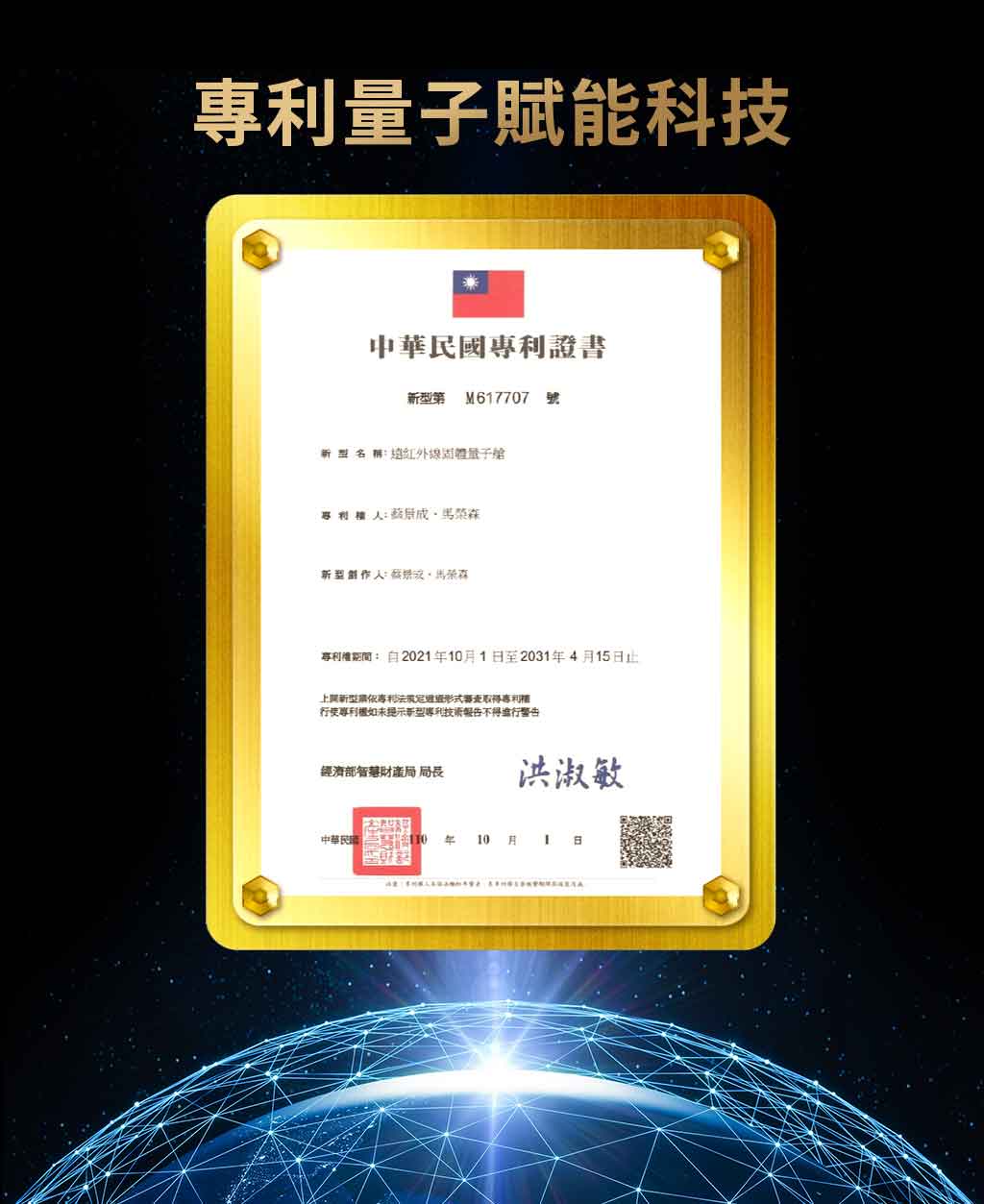 ♕一百多年來,多位物理學家因為量子力學相關研究榮獲諾貝爾物理學獎,而2022年獲獎的「量子糾纏」,也讓許多人開始努力將存在於宇宙間的量子能量運用在各種生活用品上,讓更多人因此受惠!♕經台灣唯一專利認證量子艙植入量子,是真正具有量子能量的機能性護膝。♕MIT台灣製造,買得放心!用得安心!♕專屬禮盒包裝,送禮自用兩相宜!