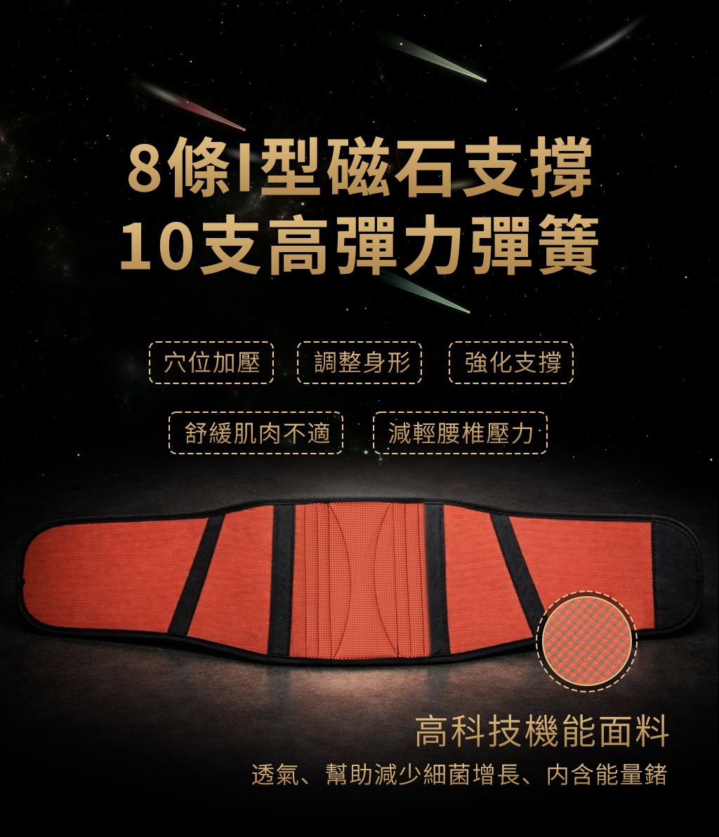 【洗滌方式】◉手洗不超過40°C,請懸掛曬乾。◉不可乾洗、不可漂白、不可熨燙、不可烘乾!【溫馨提醒】◉為達到強力支撐的護腰效果,本產品內層含18支磁石+高彈力彈簧,外層也採耐用的高強度彈力帶,在拉動彈力帶時需要花費些許力氣屬正常現象。◉七天鑑賞期為猶豫期非試用期,商品須在完整、未使用,並且可以恢復原包裝的狀況下,才能進行退換貨。