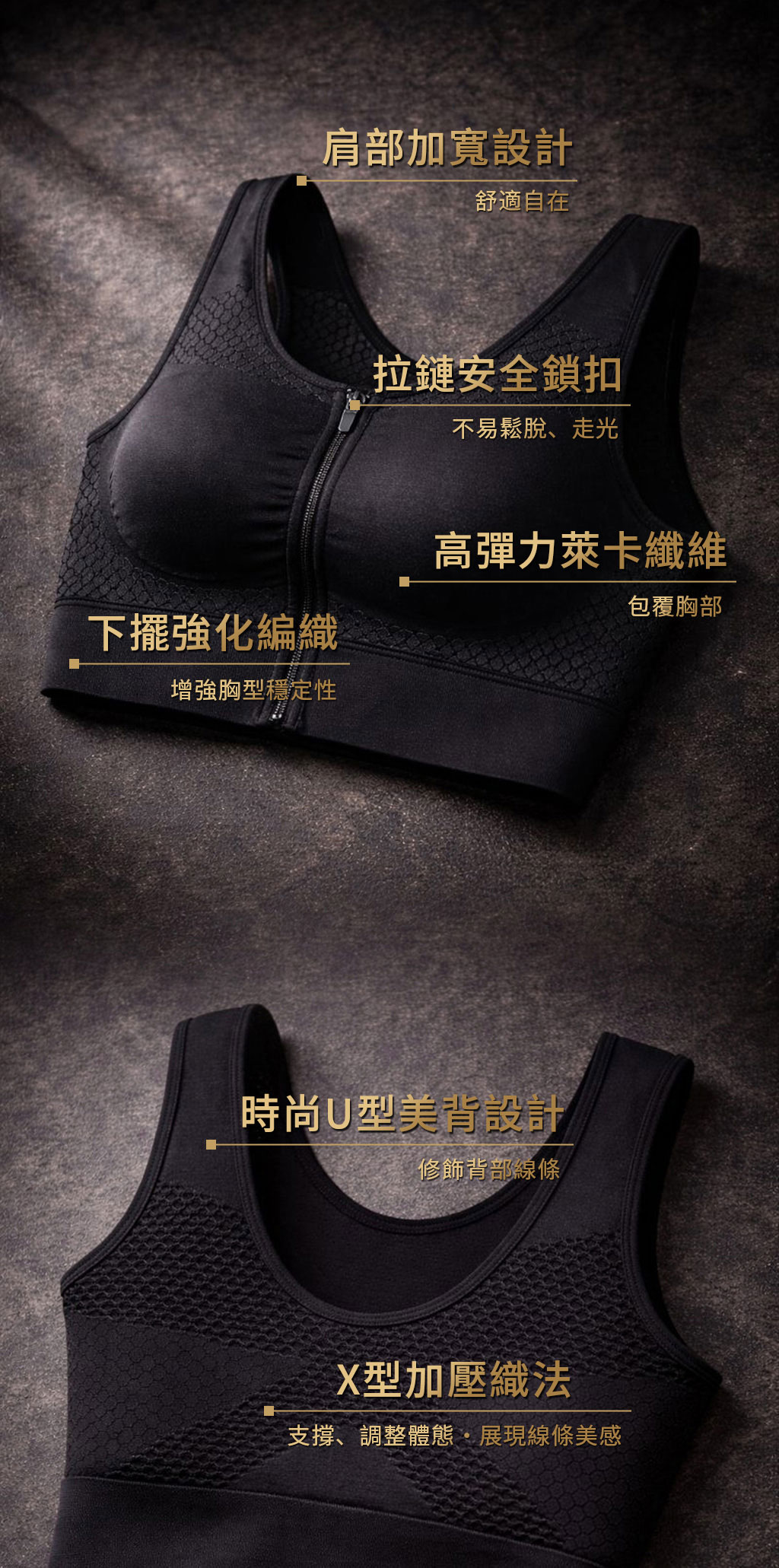 【商品特色】◉義大利無縫機台一體成型設計,隨意折疊也不易變形◉無鋼圈、無膠條、無壓迫、無束縛,可以穿著睡覺◉親膚舒適、透氣乾爽、時尚美型,可取代傳統型內衣◉正面 ~✦肩部加寬設計,舒服自在 ✦高彈力萊卡纖維,包覆胸部✦前拉集中拉鍊設計,可輕鬆穿脫✦拉鍊安全鎖扣,不易鬆脫、不易走光✦下擺強化編織,增強胸型穩定性◉背面 ~✦時尚U型美背設計,修飾背部線條✦X型加壓織法,支撐、調整體態、展現線條美感◉側面 ~ ✦側邊加高設計,包覆貼合✦六D蜂巢織法,提升包覆力◉內裡 ~✦6A級白蠶絲,親膚舒適【商品規格】◉顏色:黑◉材質:尼龍82% (內含石墨烯、抗菌紗、能量鍺)、蠶絲18%◉色牢度:4-5級◉縮率:3◉保存期限:無◉產地:台灣【尺寸選擇 (單位公分)】◉一般:上胸圍71-84 / 下胸圍66-79 / 罩杯ABC / 體重50-60公斤◉加大:上胸圍86-102 / 下胸圍79-97 / 罩杯CDE / 體重62-80公斤◉特大:上胸圍99-114 / 下胸圍97-109 / 罩杯DEF / 體重78-90公斤【洗滌方式】◉深色衣物初期下水洗滌時,有少許殘餘染料溶解於水中為正常現象,請與淺色衣服分開洗滌◉請使用中性洗劑柔性洗滌,水溫30度以下,避免長時間浸泡◉不可漂白、不可乾洗、不可烘乾、不可熨燙◉勿使用柔軟精,其成分會破壞抗菌纖維◉置於陰涼通風處晾乾,避免太陽曝曬【溫馨提醒】七天鑑賞期為猶豫期非試用期,商品須在完整、未使用,並且可以恢復原包裝的狀況下,才能進行退換貨。