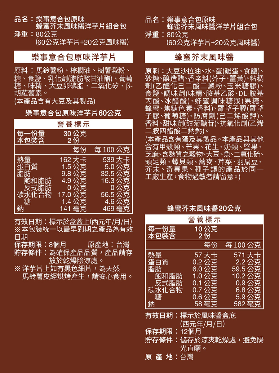 樂事原味蜂蜜芥末風味醬洋芋片80g