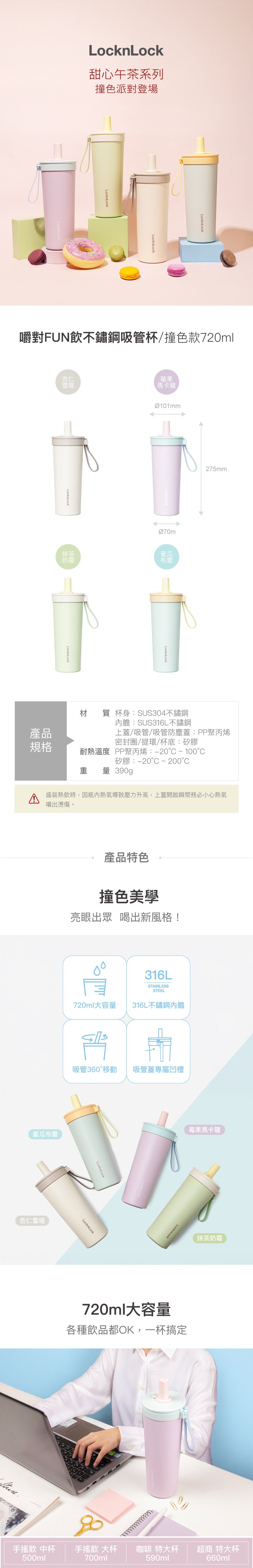樂扣嚼對FUN飲不鏽鋼吸管杯720ml-蜜瓜布蕾