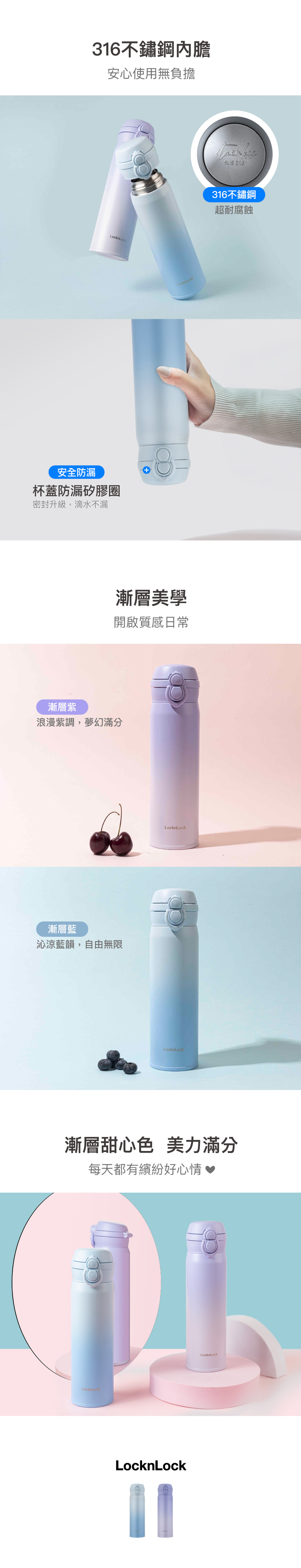 樂扣雙飲口彈蓋保溫杯480ml-漸層藍