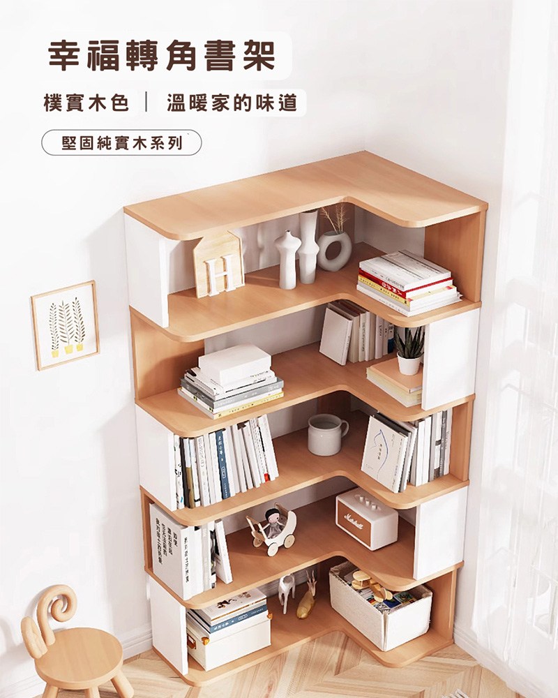 #樂樂轉角書架 #北歐實木書架# 小戶型收納架 #L 型牆角書架 #雙色簡約書架# 耐磨耐刮書架 #裝飾收納兩相宜# 兒童房必備書架