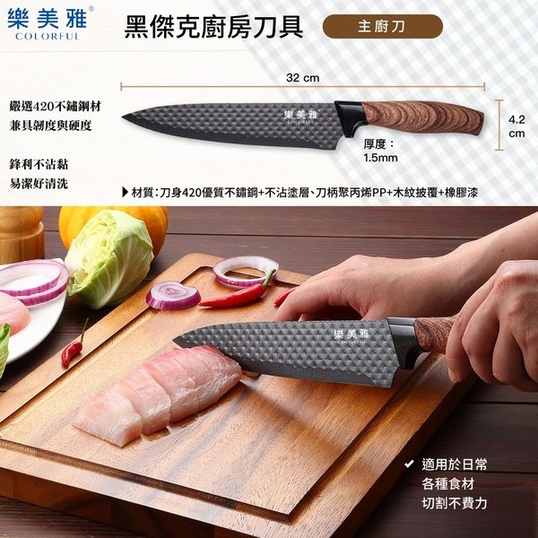 ◇刀具嚴選420不鏽鋼材兼具韌度與硬度 。◇人體工學刀柄,耐握好用。◇不受腐蝕,無需特別保護。◇輕巧好切不沾黏。