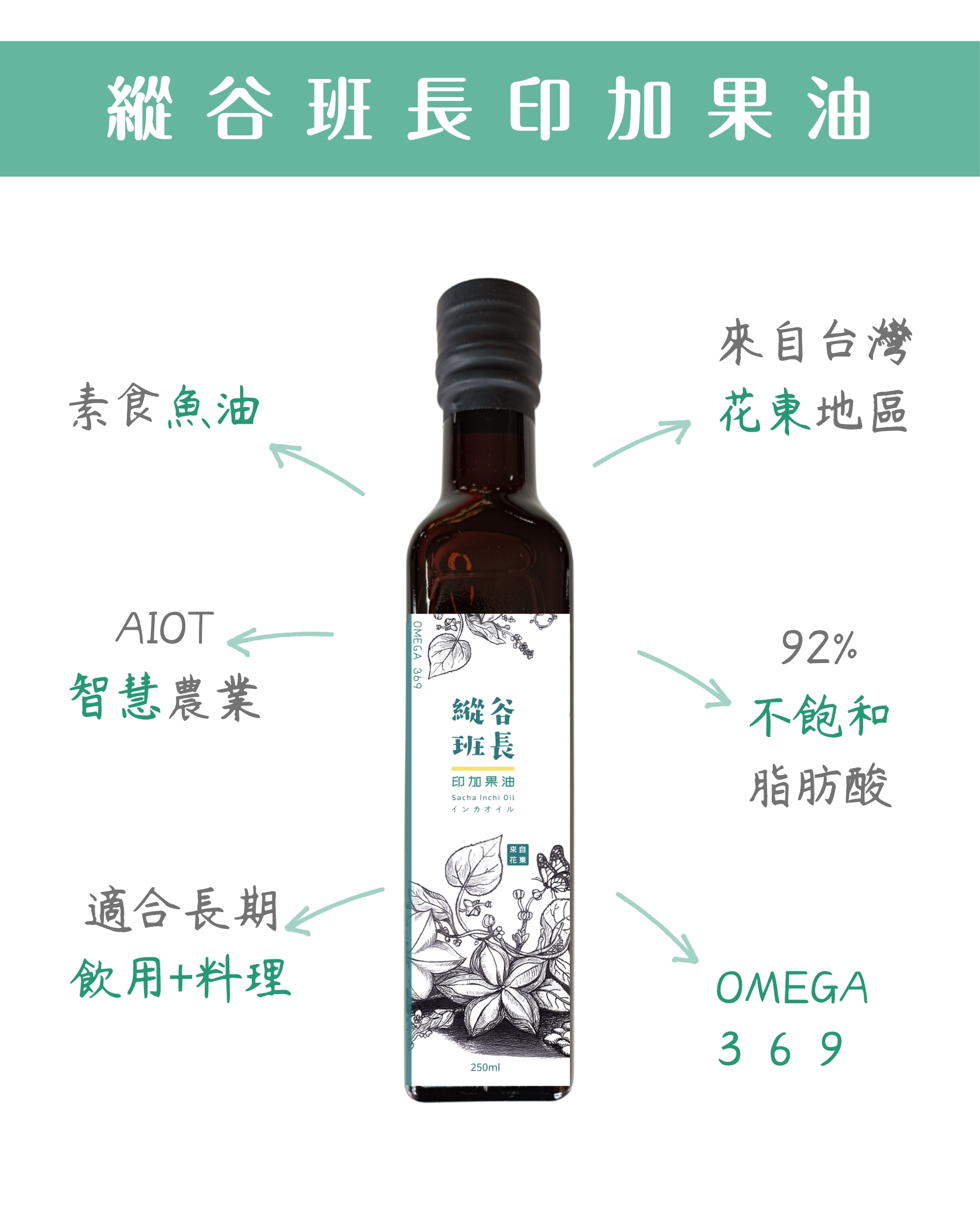 品名:縱谷班長-印加果油獲獎:2023年荷蘭A.A.TASTE AWARDS 全球純粹風味評鑑-最高三星大獎