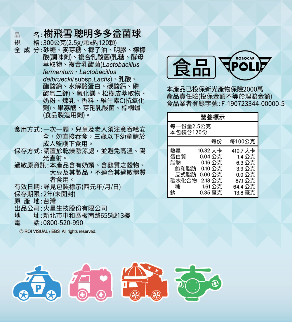 【樹飛雪】二入 POLI 波力益菌球(乳酸菌多多口味) (罐裝) 300g(共2罐) 加送隨身包 (20顆/包)