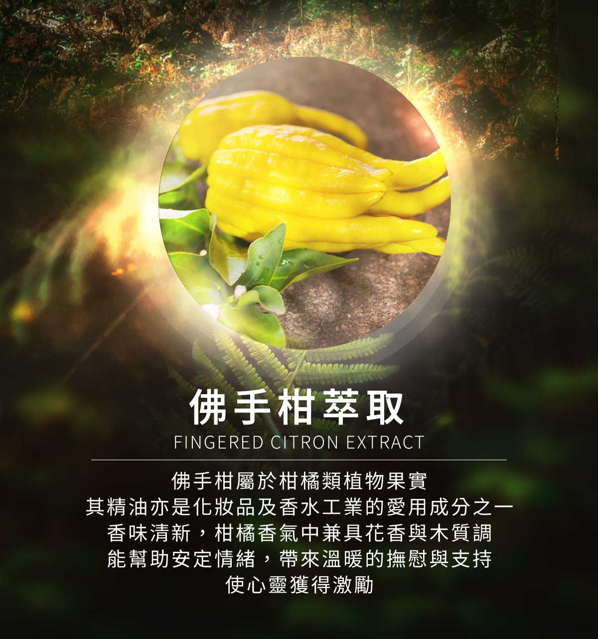 成分:ISOPROPYL PALMITATE 棕櫚酸異丙酯、MENTHOL 薄荷醇、CITRUS PARADISI (GRAPEFRUIT) PEEL OIL 葡萄柚(GRAPEFRUIT)果皮油、CINNAMOMUM CAMPHORA (CAMPHOR) BARK OIL 樟樹(CAMPHOR)樹皮油、MENTHA PIPERITA (PEPPERMINT) OIL 辣薄荷(PEPPERMINT)油、CAPRYLIC/CAPRIC TRIGLYCERIDE 辛酸/癸酸甘油三酯、CITRUS AURANTIUM BERGAMIA (BERGAMOT)FRUIT OII 香檸檬(BERGAMOT)果油、CYMBOPOGON CITRATUS LEAF OIL 檸檬香茅葉油、CITRUS LIMON (LEMON) PEEL OIL 檸檬(LEMON)果皮油、LAVANDULA ANGUSTIFOLIA (LAVENDER) OIL 薰衣草(LAVENDER)油、SIMMONDSIA CHINENSIS (JOJOBA) SEED OIL 霍霍巴(JOJOBA)籽油