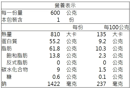 水、米酒、雞肉、薑、麻油(芝麻)、調味劑(L-麩酸鈉、鹽)、枸杞、鹽、當歸、糖