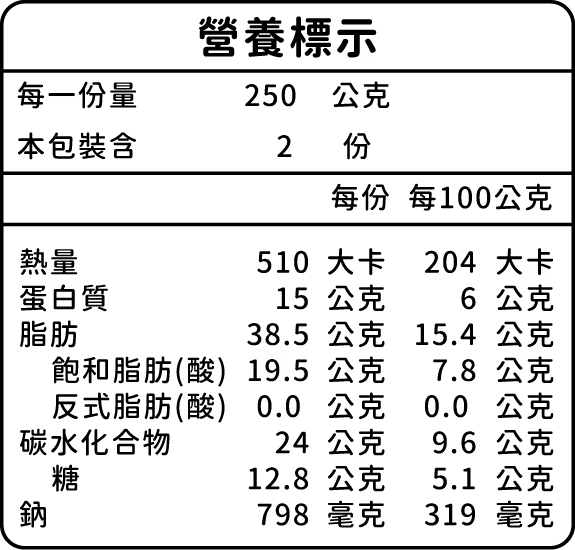 洋蔥、雞湯(水、雞骨)、牛肉(美國)、蕃茄糊[蕃茄泥(蕃茄糊、水)、檸檬酸]、咖哩醬[麵粉、豬油、焦化洋蔥(豬油、洋蔥、水)、乳糖、食鹽、砂糖、第一類普通焦糖色素、番茄粉、香蕉、調味劑(L-麩酸鈉、5'-次黃嘌呤核苷磷酸二鈉、5'-鳥嘌呤核苷磷酸二鈉、琥珀酸二鈉)、醬汁粉(砂糖、糊精、食鹽、洋蔥粉、丁香、咖啡、辣椒、胡椒、肉桂、肉豆蔻、鼠尾草粉、蘋果汁粉)、雞高湯粉(棕櫚油、火雞油、蔬菜泥(菜籽油、洋蔥)、植物性蛋白水解物、香辛料(鼠尾草、胡椒、薑黃))、脫脂奶粉、葡萄糖、酸味劑(檸檬酸、DL-蘋果酸、醋酸鈉、冰醋酸)、香料]、紅酒(葡萄)、洋蔥醬(洋蔥、紅蘿蔔、大豆油、蒜)、蕃茄醬[水、蕃茄糊、蔗糖、釀造醋、鹽、香辛料(白胡椒、肉桂、紅辣椒、薑、丁香、肉豆蔻、芥末、月桂葉、眾香子)]、奶油(殺菌乳脂)、醬油、糖色(蔗糖、砂糖、水、鹽)、大豆油、大蒜、咖啡(即溶咖啡、咖啡豆萃取物)、鹽、巧克力(可可、糖、肉桂、薑、香草豆莢)