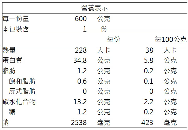 水、南蝦、花雕酒、紹興酒、米酒、紅棗、鹽、枸杞、調味劑(L-麩酸鈉、鹽)、人參、當歸、川芎