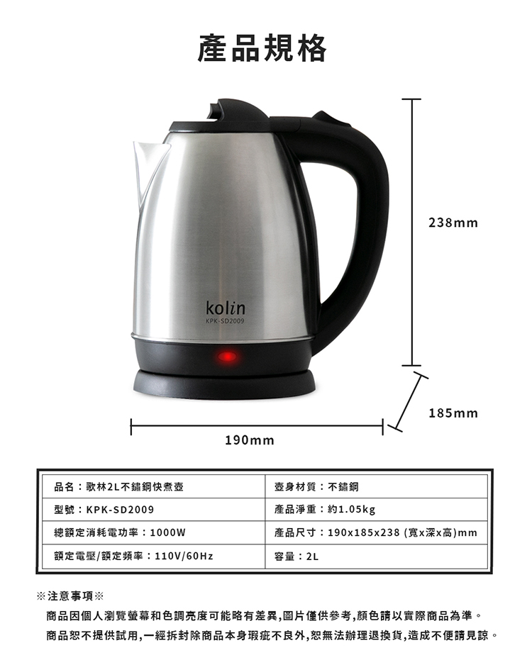 【歌林】2公升不鏽鋼快煮壺KPK-SD2009