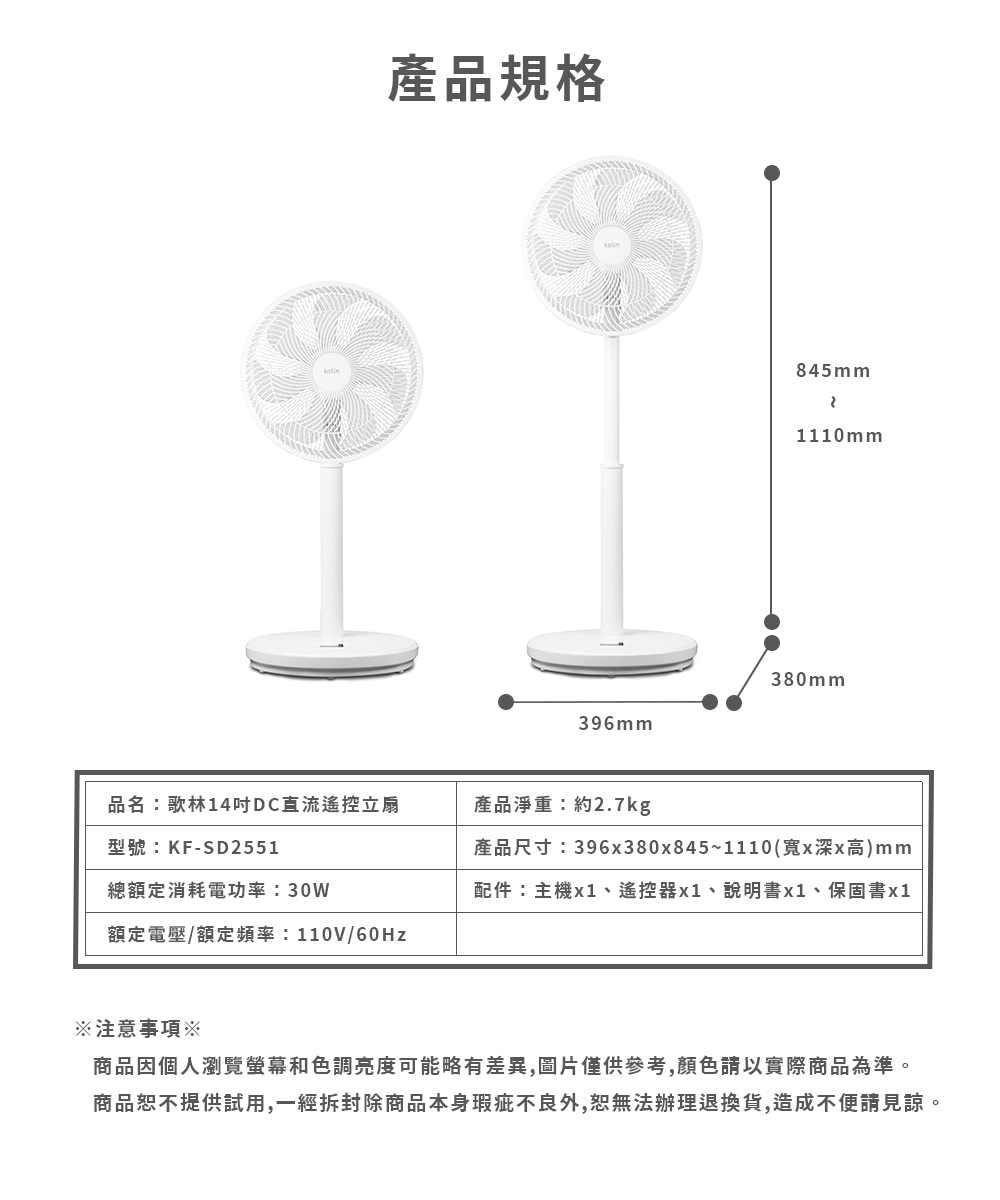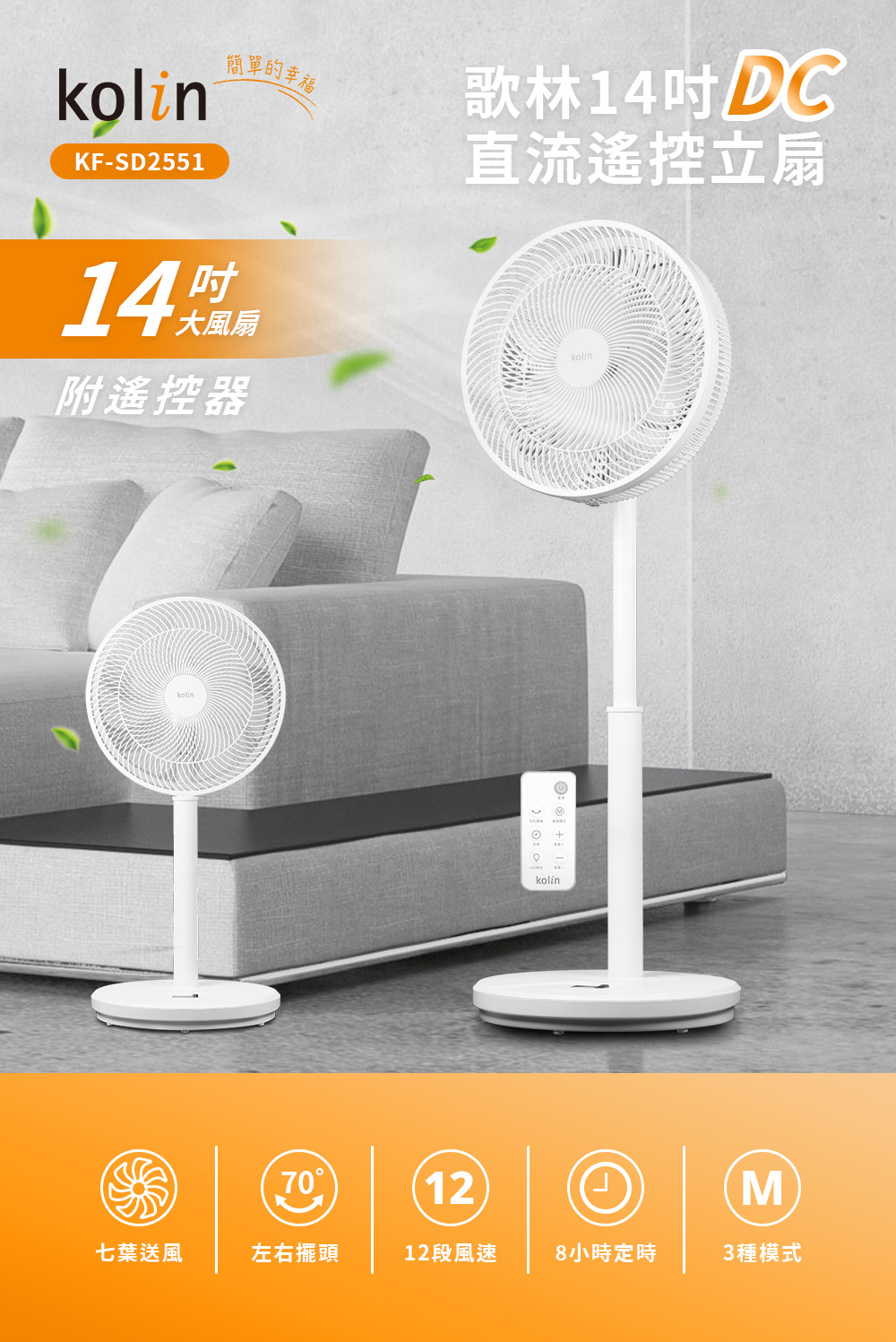 【歌林】14吋DC直流遙控立扇KF-SD2551