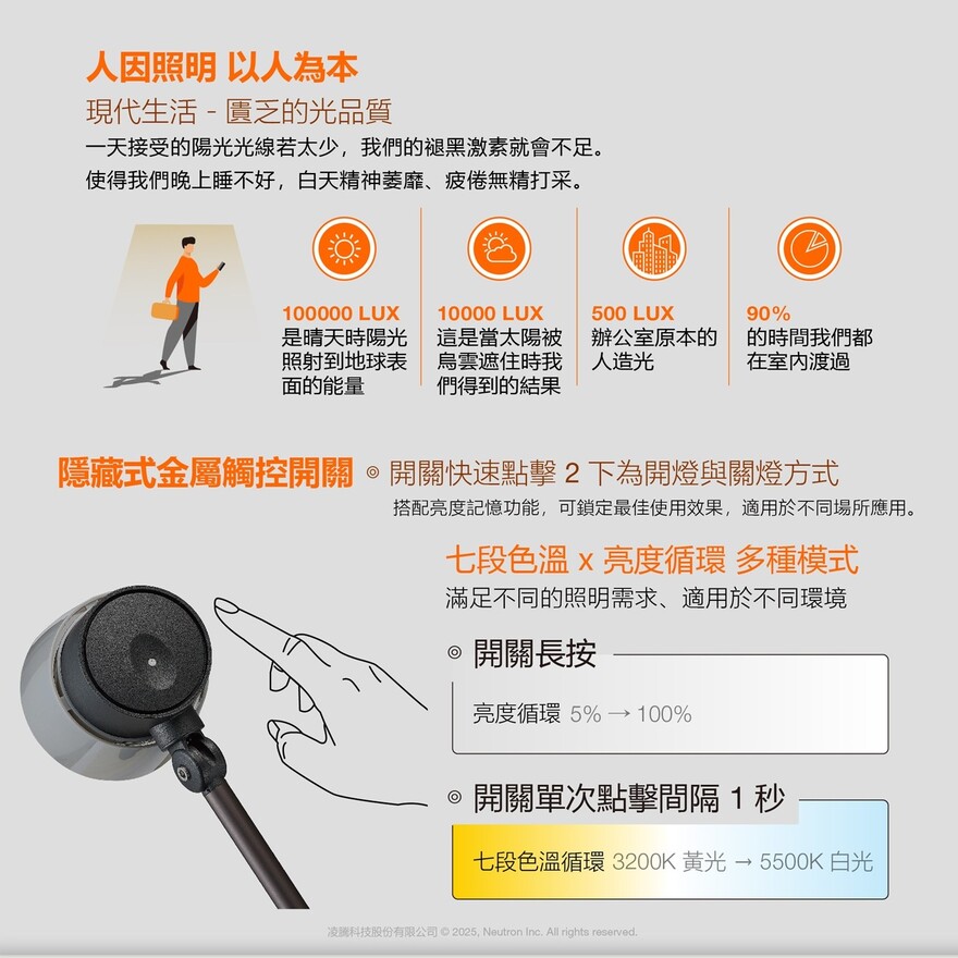 [凌騰科技]歐司朗圖賓根調光調色LED 6.5W護眼檯燈 設計款