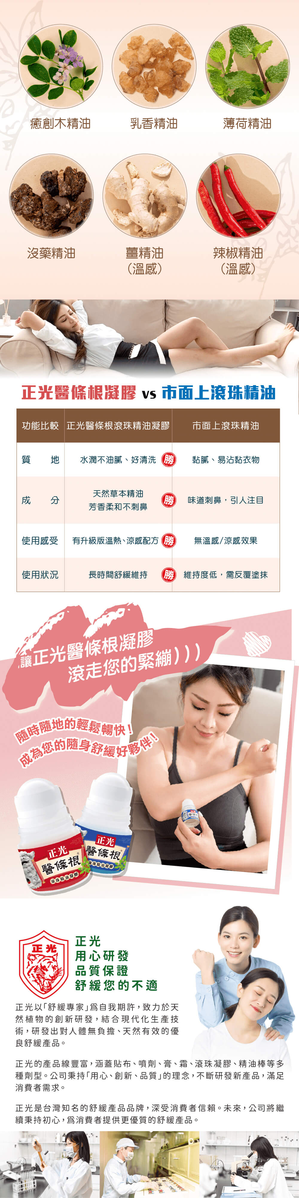 產品成分:一條根萃取液、癒創木精油、乳香精油、沒藥精油、薄荷精油、丁香精油、芬多精香精油、凝膠基劑。
