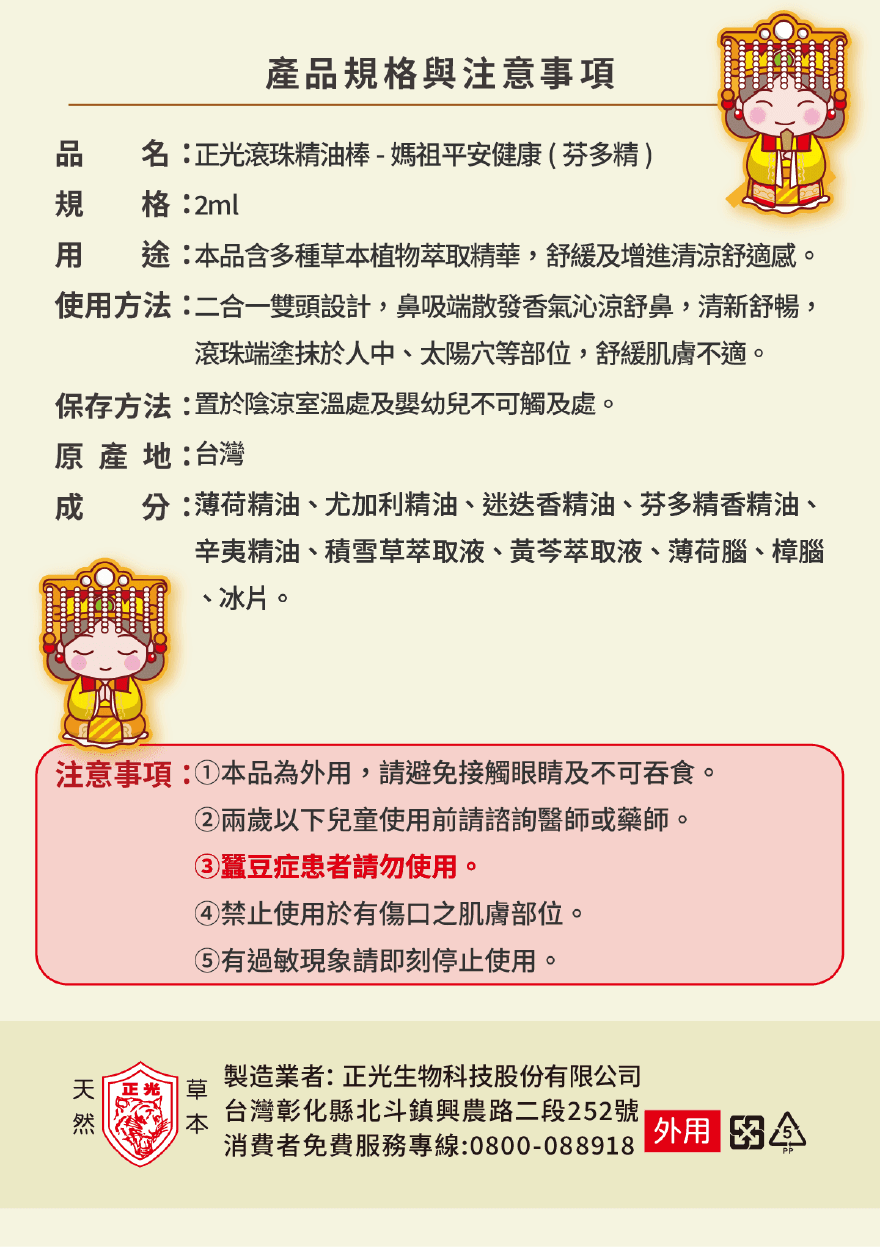正光媽祖平安棒-芬多精(平安健康)(滾珠精油棒)