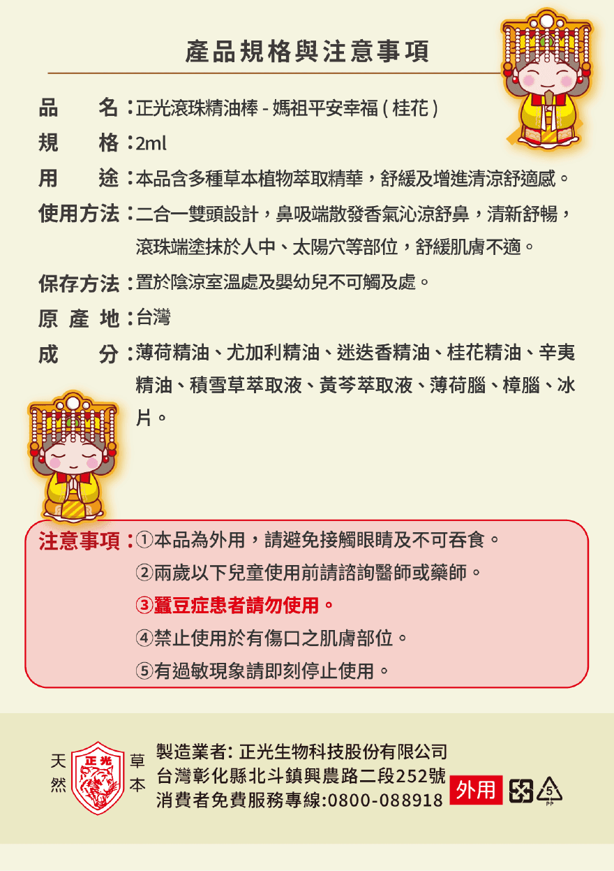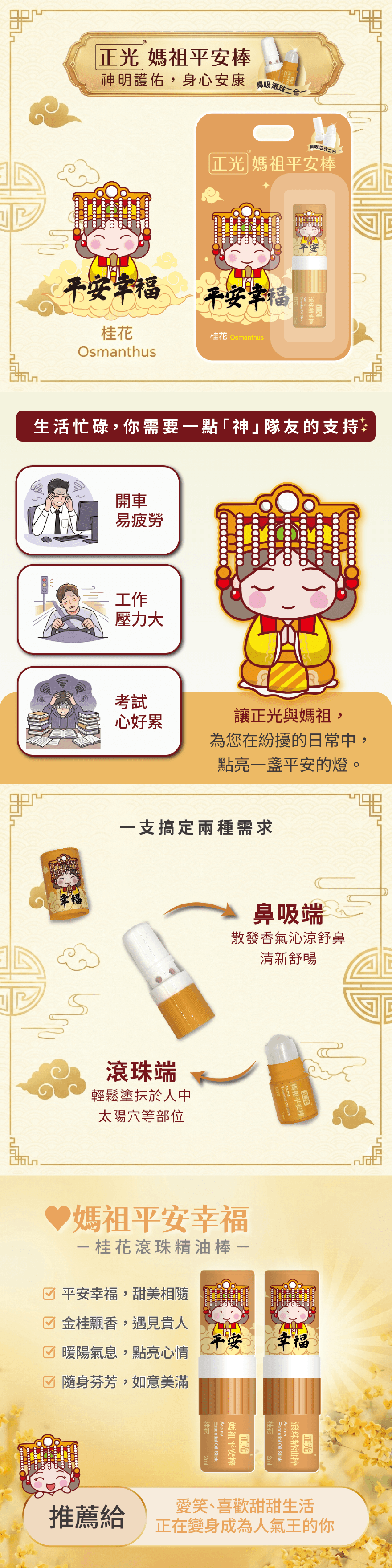 正光媽祖平安棒-桂花(平安幸福)(滾珠精油棒)