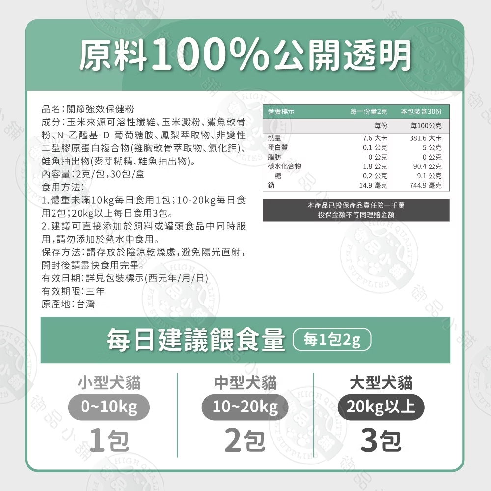 犬貓關節強效保健粉30包/盒 UC-II專利膠原蛋白 葡萄糖胺 鮭魚萃取 關節保養 寵物保健 犬貓適用