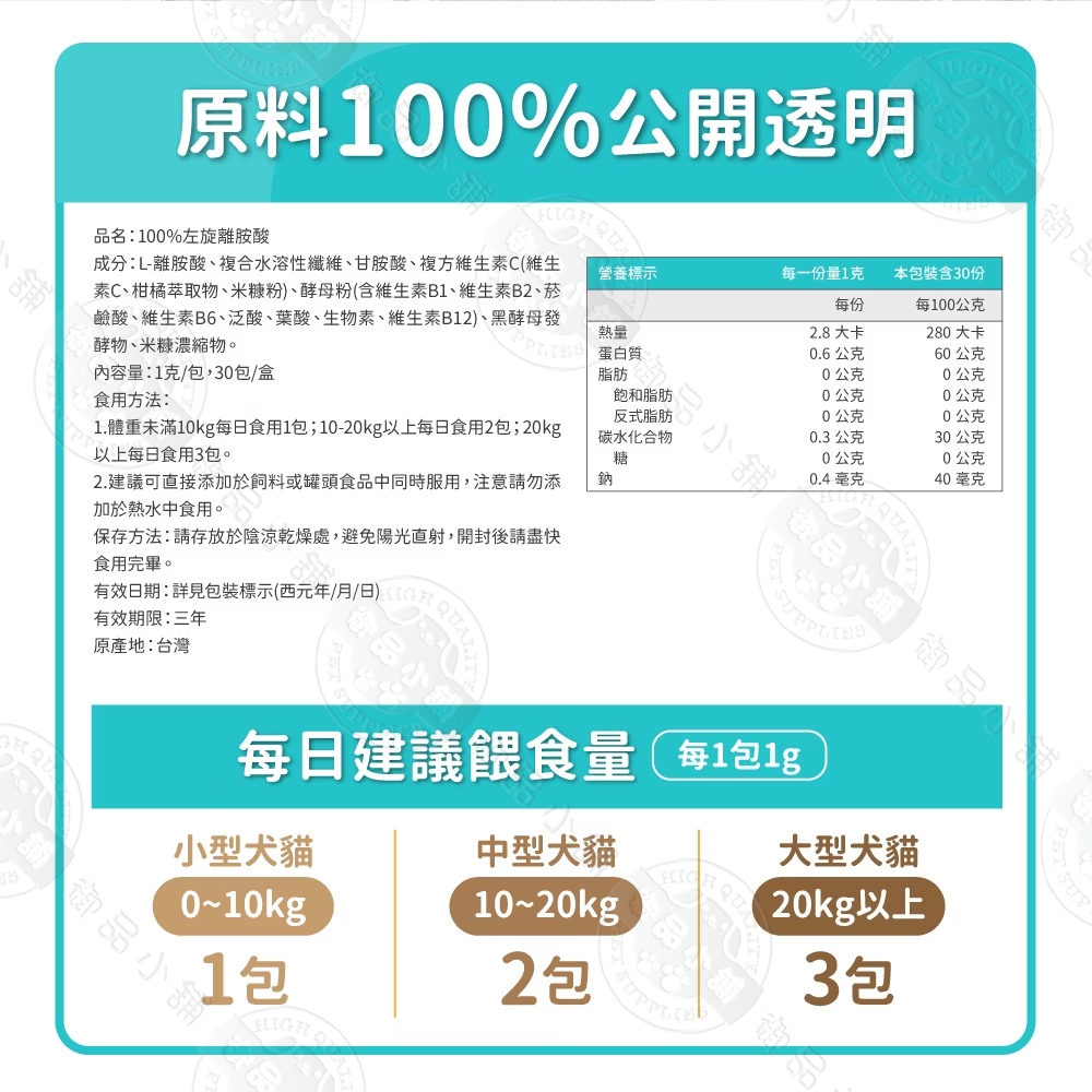 犬貓100%左旋離胺酸30包/盒 維生素C 專利離胺酸 添加黑酵母 寵物保健 犬貓適用