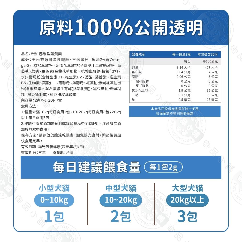 犬貓8合1游離型葉黃素30包/盒 葉黃素護眼 玉米黃素 寵物保健 犬貓適用