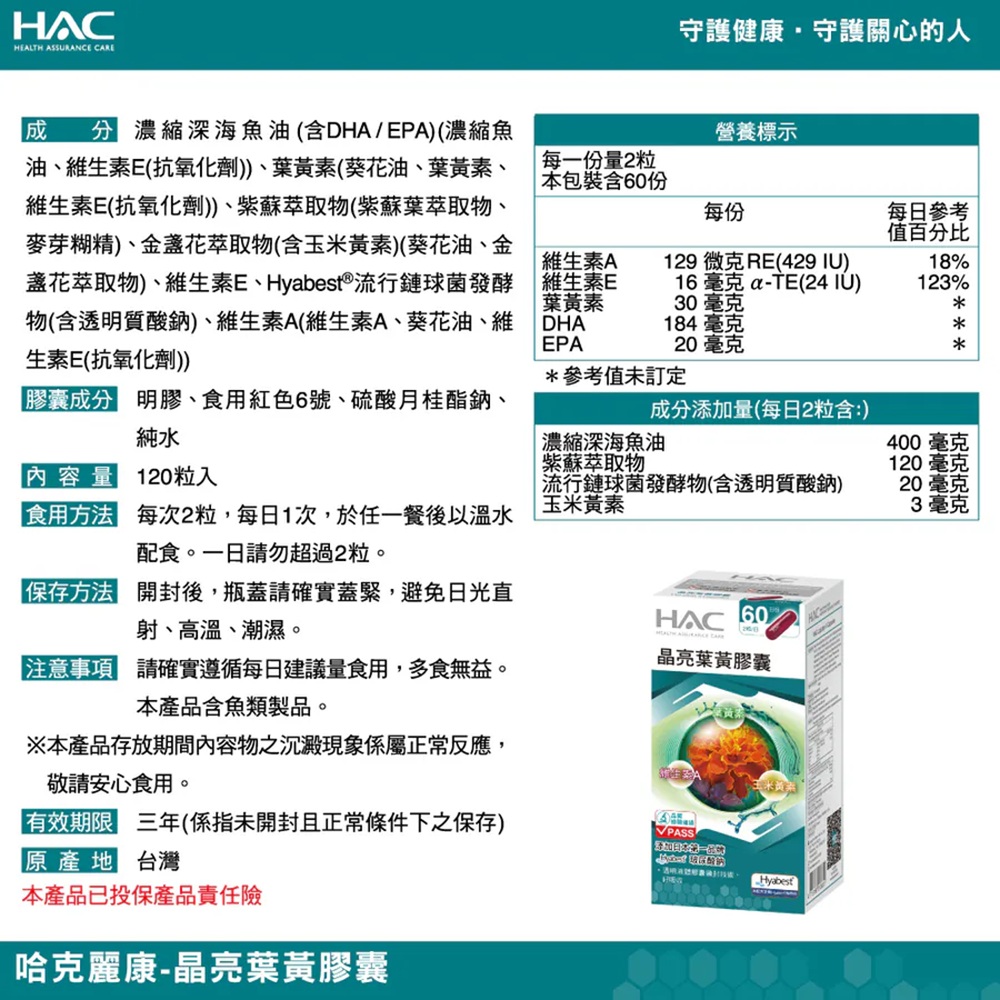 [佑全保健藥妝]永信HAC晶亮葉黃膠囊120粒/瓶-升級版