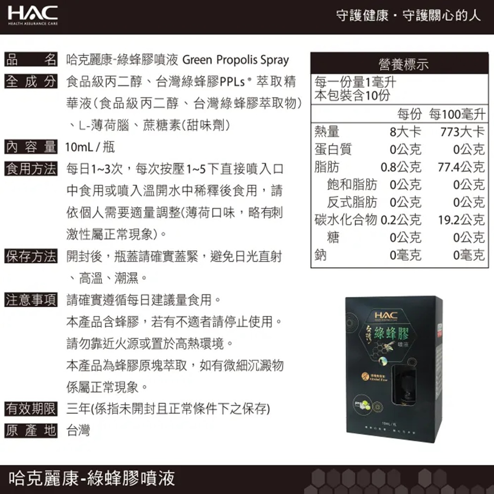 [佑全保健藥妝]永信HAC台灣綠蜂膠噴液10mL/瓶