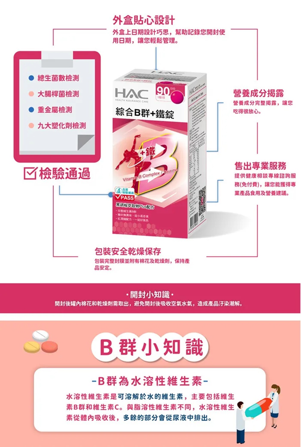 [佑全保健藥妝]永信HAC綜合B群+鐵錠90錠/瓶