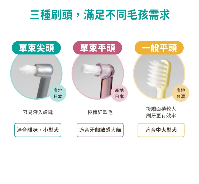 為毛孩選一款最合適的牙刷• 單束設計+細軟毛,不刺激毛孩牙齦• 日本製與台灣製,品質保證• 開放大空間,符合貓咪天性,如廁不壓迫• 36cm高牆,防止貓砂、尿液外噴• 一體成形,好清潔、不易藏污納垢