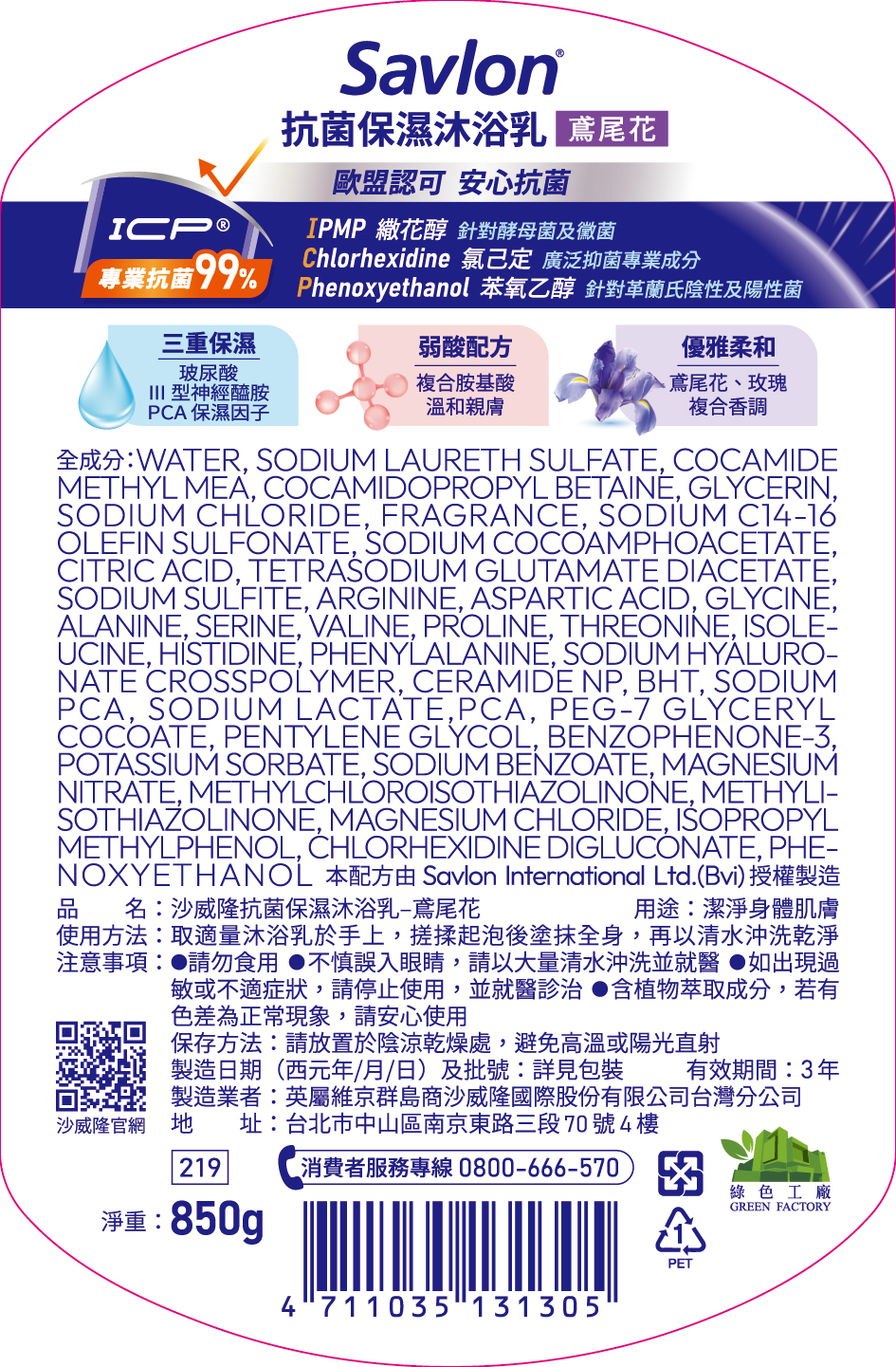沙威隆抗菌保濕沐浴乳-鳶尾花