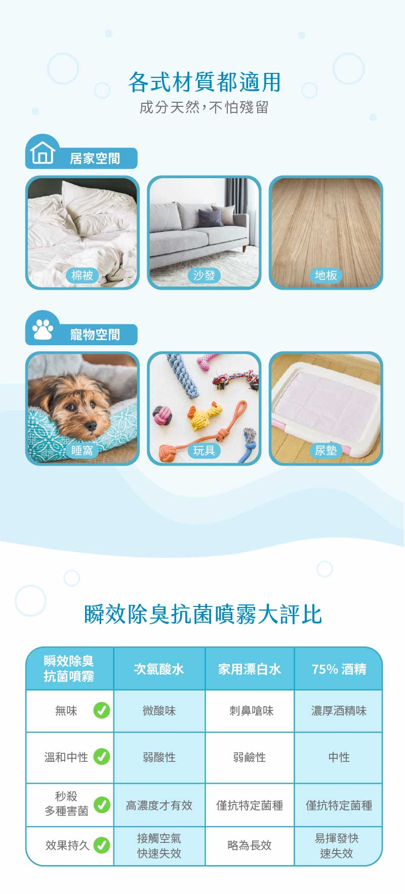 #有臭必除 #全面防護 #溫和親膚 #寵物舔食無礙 #各種材質物品適用 #可作為隨身防護用途