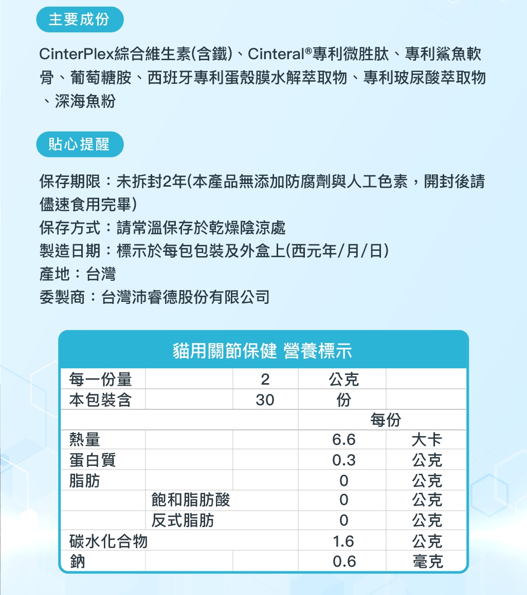 [沛睿德]寵護 貓用關節保健粉 2g X 30包