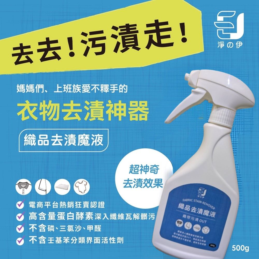 【淨の伊】織品去漬魔液(去漬潔淨劑、衣領精) 500g