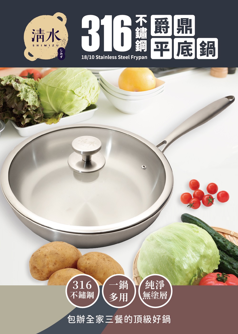 [清水]316不鏽鋼爵鼎平底鍋32CM