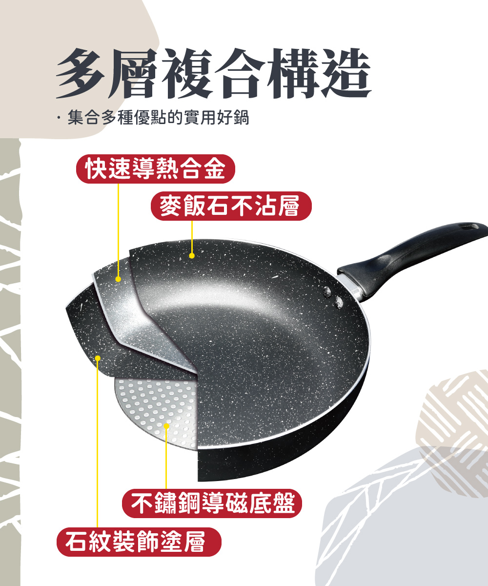 ◆鍋身材質:高級複合金、鍋面不沾處理。