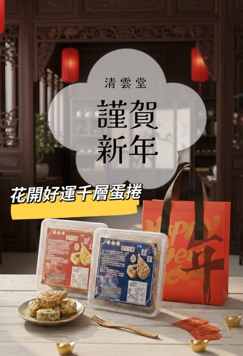【中式典藏】清雲堂 花開好運.千層蛋捲192G(原味)附保溫袋