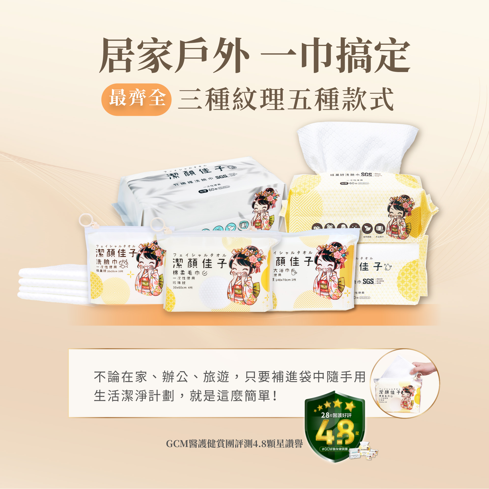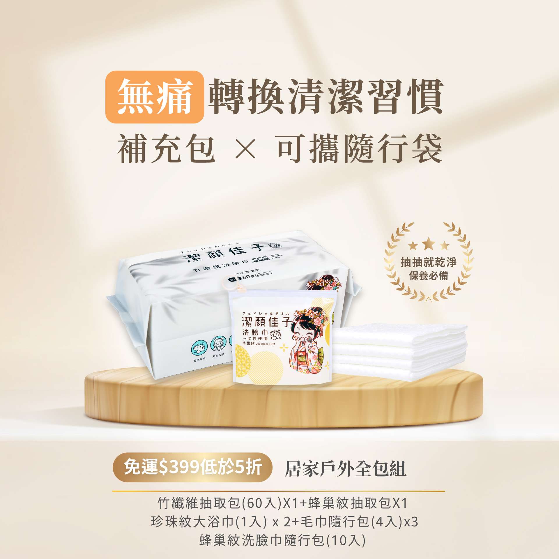 【佳格國際】潔顏佳子竹纖+蜂巢+珍珠紋理棉柔巾|居家戶外全包組46折399免運