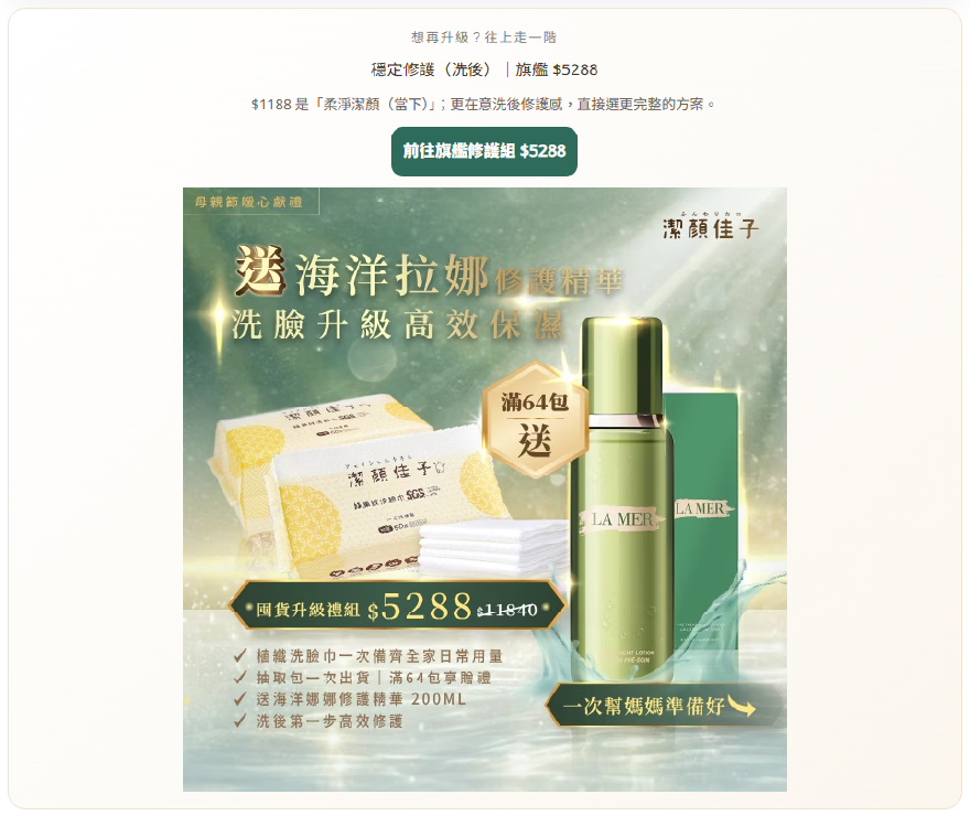 另有滿64包-贈海洋娜娜修護精華之組合,適合一次備齊日常使用需求,省更優惠價可依需求選擇適合方案。