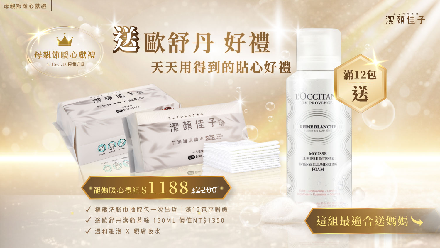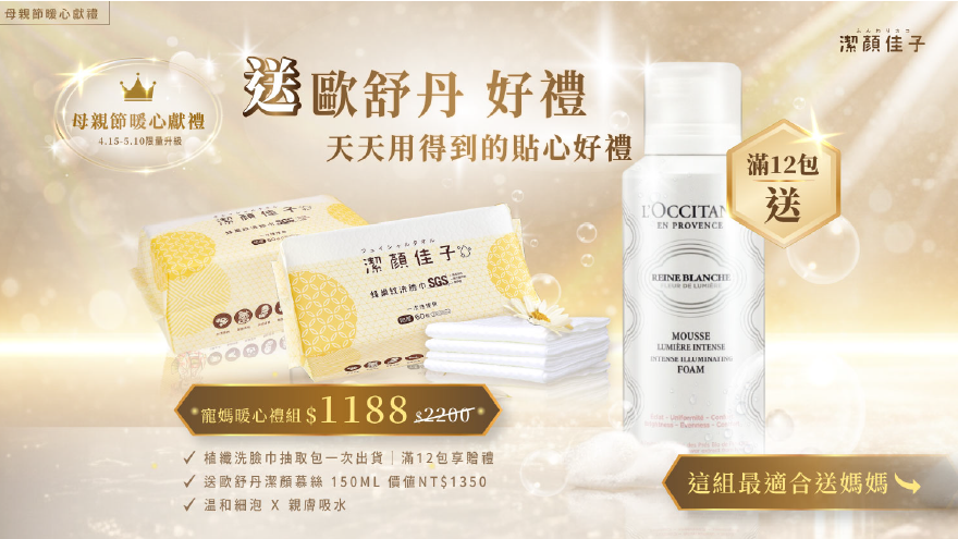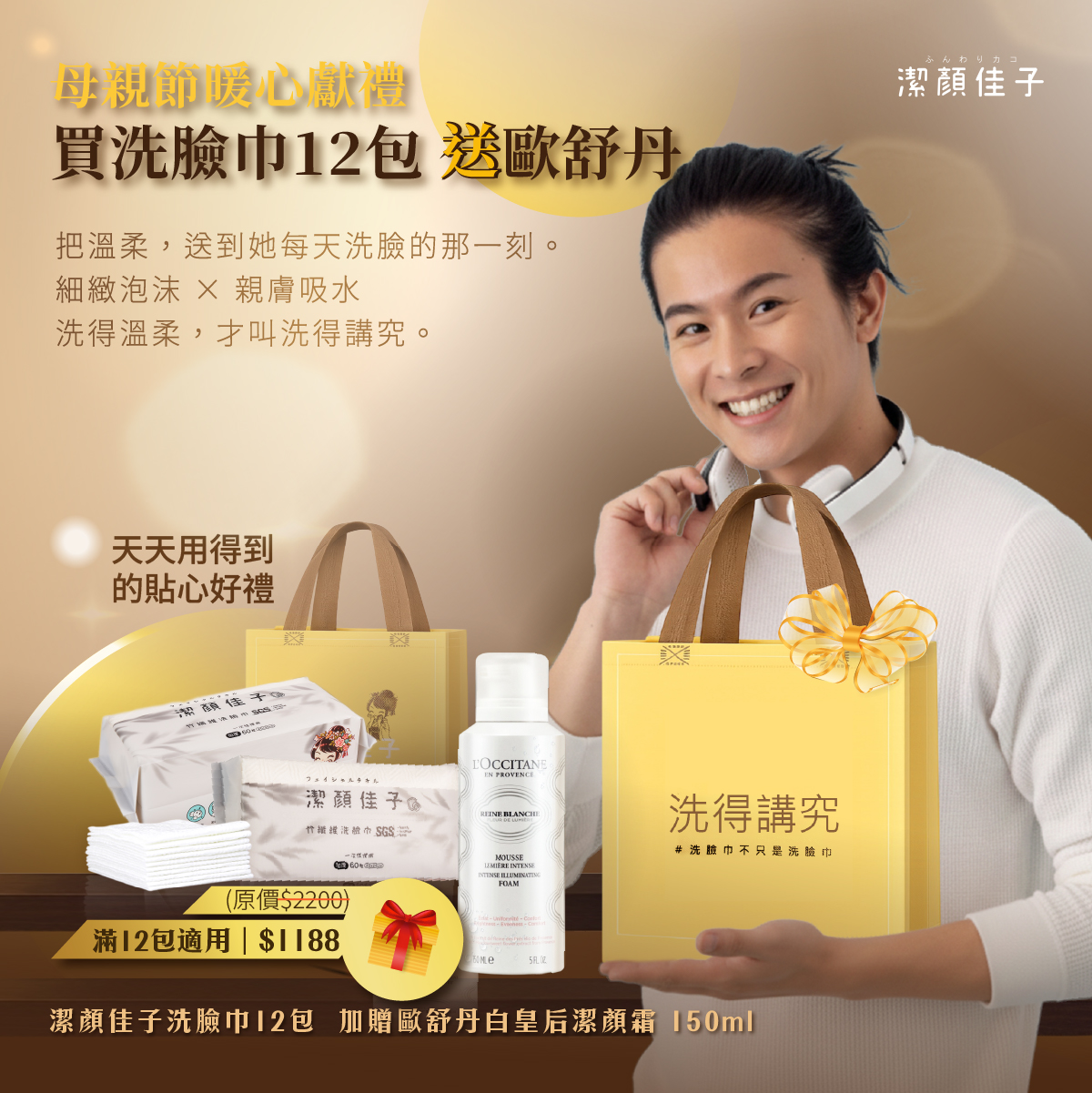 【潔顏佳子】買洗臉巾12包組,送歐舒丹暖心禮 |👉 媽咪專屬質感禮