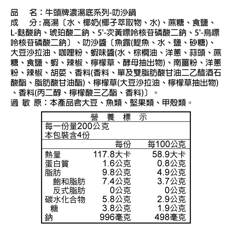 牛頭牌濃湯底 叻沙鍋