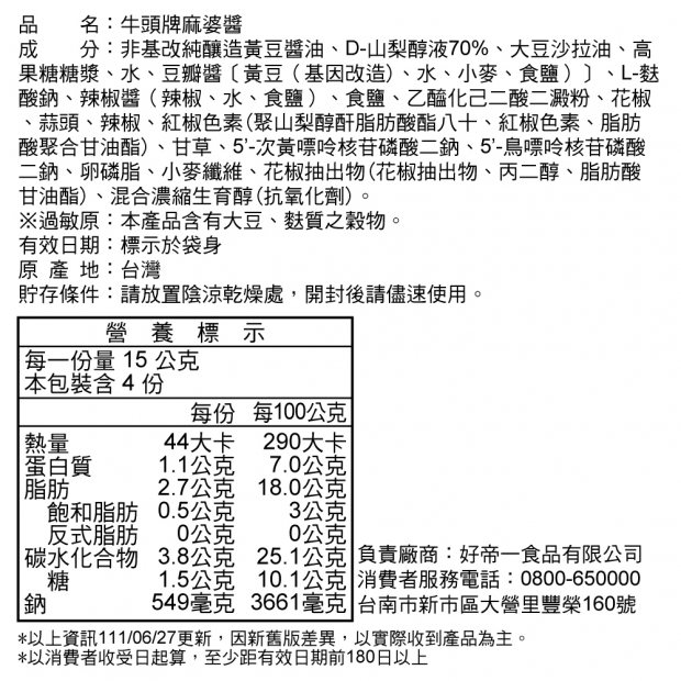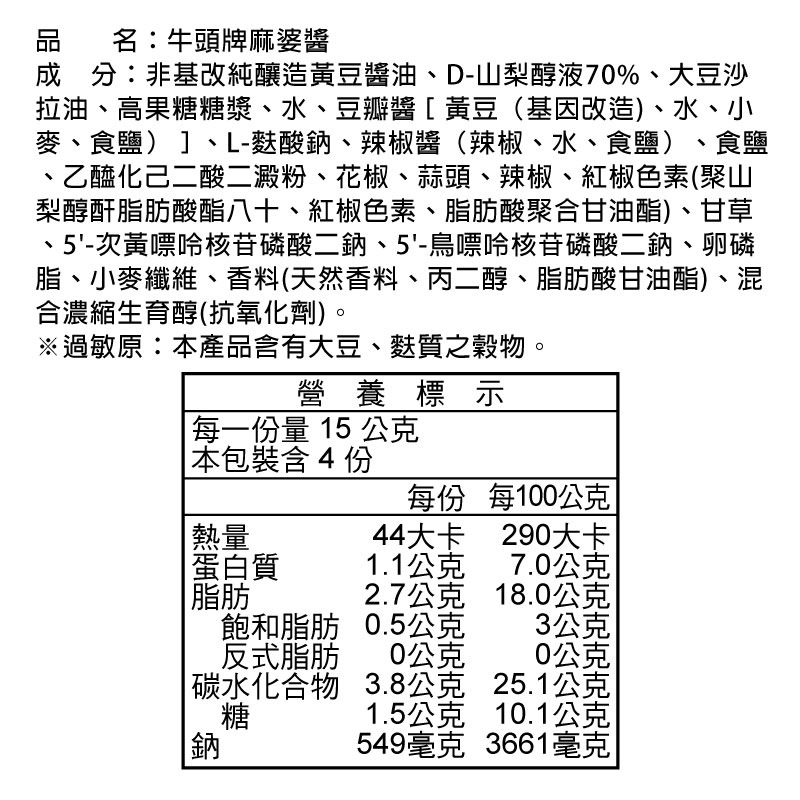◎品牌:牛頭牌 ◎規格: 60g克 x 1 x 1Bag包